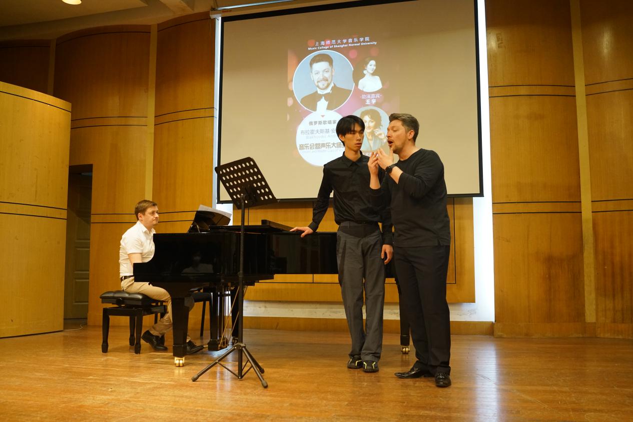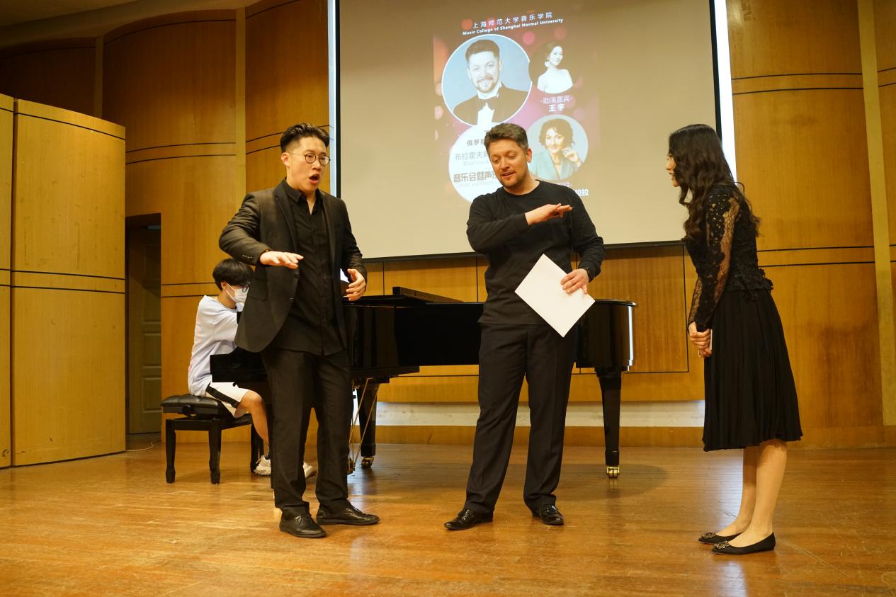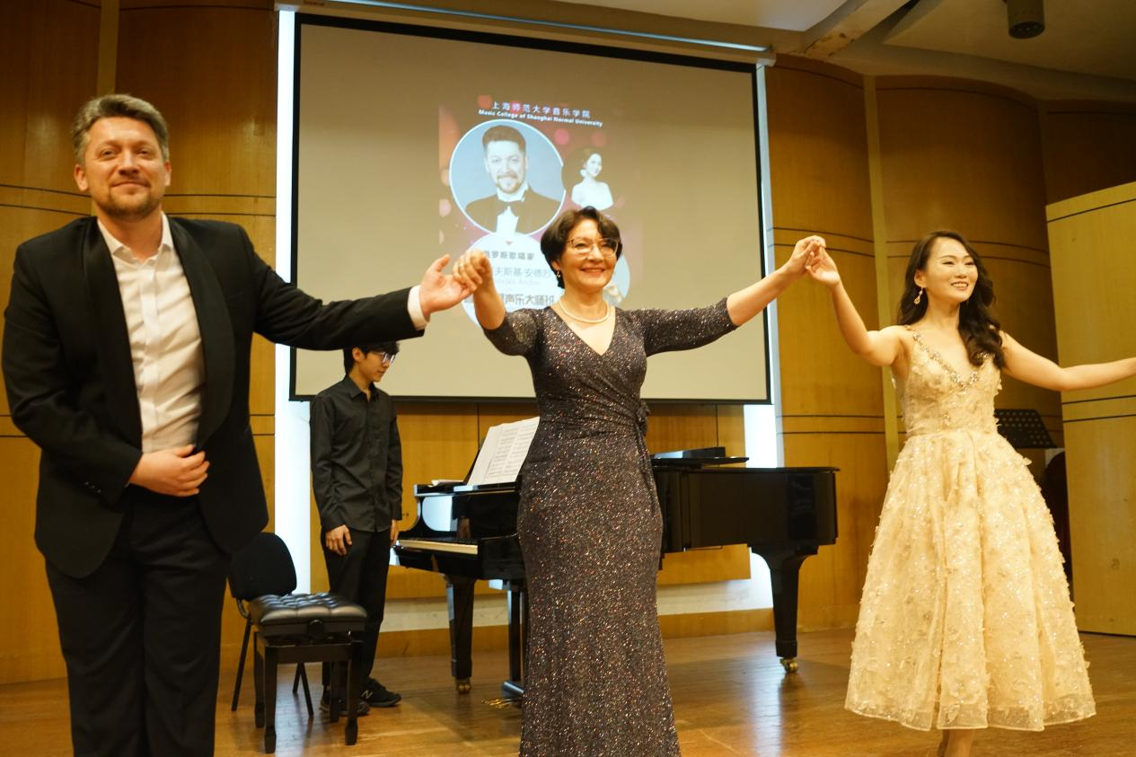 德米特里耶娃·季拉拉副教授表示:“由于時(shí)間緊,盡管合樂的時(shí)間很短,感謝布拉霍夫斯基·安德烈為我們帶來了一場精彩的音樂會!”布拉霍夫斯基·安德烈動情地說:“這次非常感謝上海師范大學(xué)音樂學(xué)院對我的盛情邀請,我感到非常榮幸,這是三年疫情以來,我首次登上舞臺進(jìn)行演唱,這次活動對我來說意義非凡,感謝大家熱情的掌聲,今天是我最幸福的一天!”