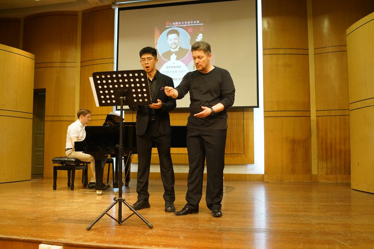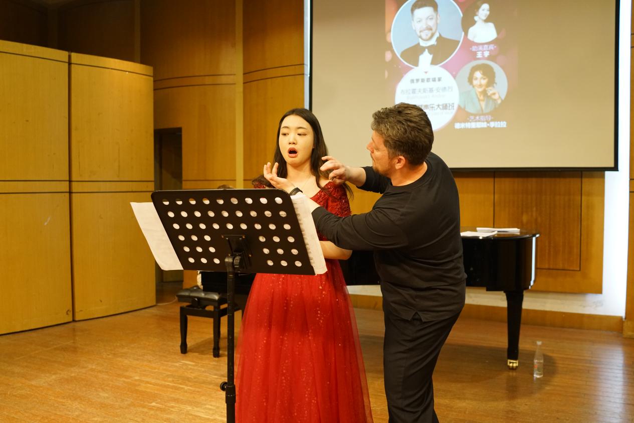 在稍作休息后,布拉霍夫斯基·安德烈舉行了大師班課程。在大師班課程中,我校音樂學(xué)院的幾位不同聲部的學(xué)生進(jìn)行了演唱,布拉霍夫斯基·安德烈根據(jù)每位學(xué)生的學(xué)習(xí)情況及聲音特點(diǎn)進(jìn)行了因材施教,針對于學(xué)生在課程中遇到的歌唱位置、氣息運(yùn)用、歌唱腔體等聲樂技巧的問題進(jìn)行了耐心細(xì)致的指導(dǎo)與解答。學(xué)生們的進(jìn)步立竿見影,收獲滿滿。