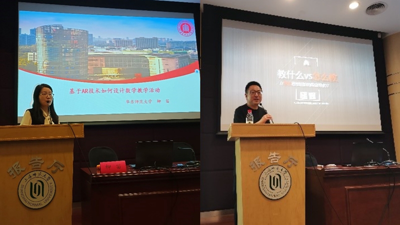 主題研討會上,教材副主編、華東師范大學副教授柳笛為與會者帶來了關于基于AR技術設計數學教學活動的分享,介紹了基于AR技術的教學設計框架和課堂評價框架,并通過幾何中應用AR技術的案例設計,展示了該技術在數學教學中的應用。教材核心編寫成員、上海市教學學會寶山實驗學校學生發展中心主任顧峻崎現場探討了數學思維進階的課堂探索與實踐,分享了教學內容和教學方法兩個維度為學生搭建學習支架的具體路徑,強調了數學深度學習應超越具體知識和技能層面,提升至思維層面,培養學生的思維策略和思維品質。