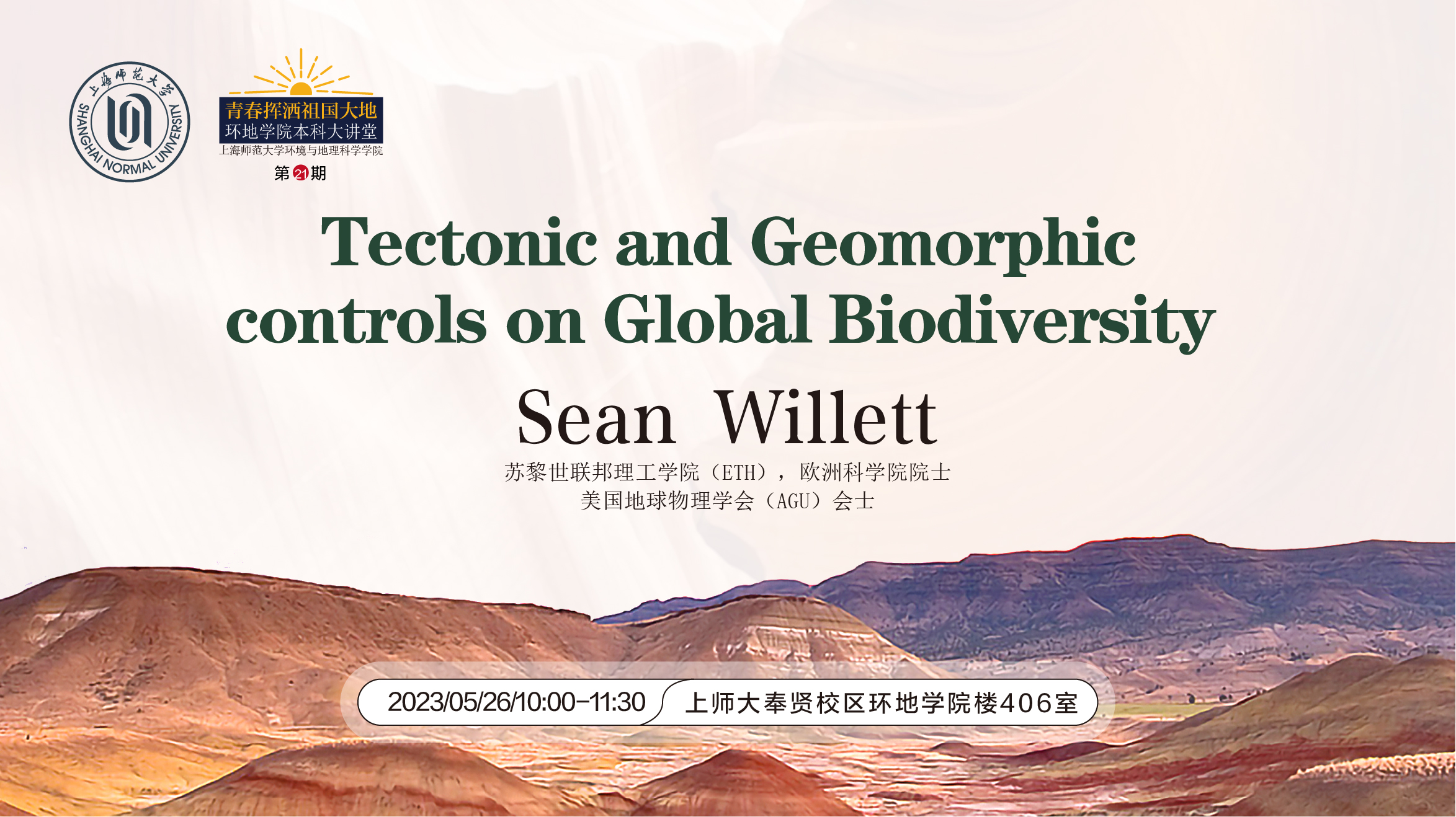 5月26日上午,環(huán)境與地理科學(xué)學(xué)院第21期本科大講堂于奉賢校區(qū)環(huán)地學(xué)院樓406室開(kāi)講。此次本科大講堂邀請(qǐng)到蘇黎世聯(lián)邦理工學(xué)院(ETH)Sean Willett院士,做題為“Tectonic and Geomorphic controls on Global Biodiversity”的講座。講座由副院長(zhǎng)盧松教授主持,學(xué)院教師涂耀仁副研究員和李亞龍、全體輔導(dǎo)員老師、2021級(jí)及2022級(jí)本科生代表參加了本次講座。