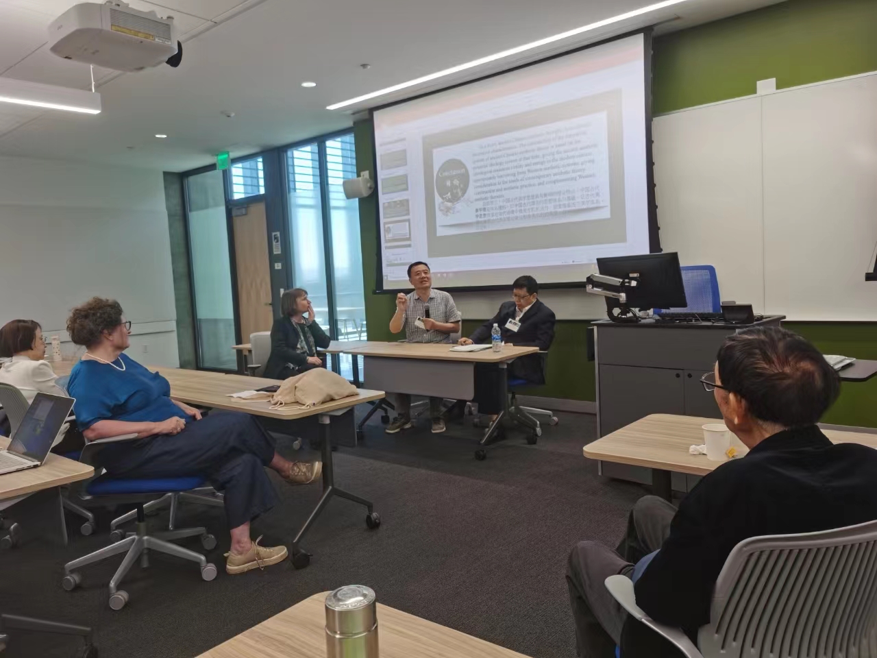 報告結束后,王建疆教授與國際中國美學學會創建人、夏威夷大學中國哲學教授、著名儒學家成中英進行對話,同時還就來自世界各地不同大學的八位學者的提問進行一一回答。會場主持人、來自斯洛蒙尼亞盧布爾雅納大學哲學系的Tea Sernelj教授在總結發言時說:“正因為王建疆教授創造了別現代主義理論,他才能得到這樣的榮譽。”本次會議結束后,王建疆教授又受邀在世界知名高校——斯坦福大學進行了學術交流。