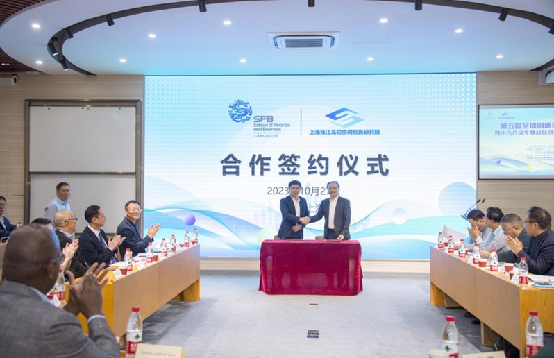 開幕式上,舉行了概念驗證合作框架協議的簽字儀式,上海師范大學商學院院長劉江會和上海張江高校協同創新研究院院長倪爭技代表協議雙方簽字。