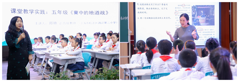 3日下午,大會進(jìn)入“小學(xué)語文實(shí)踐與課程創(chuàng)新專題研討”環(huán)節(jié),中國語文報(bào)刊協(xié)會課程與教學(xué)專業(yè)委員會副理事長兼秘書長丁煒副教授主持。在下午的會議中,上海市松江區(qū)泗涇第二小學(xué)正高級教師鄭艷老師執(zhí)教《冀中的地道戰(zhàn)》一課,并作了題為《充分學(xué)習(xí)視野下的單元教學(xué)設(shè)計(jì)》的微報(bào)告。微報(bào)告中,鄭老師聚焦單元教學(xué)設(shè)計(jì)問題,詳細(xì)介紹了自己的教學(xué)思路,并提出教師在語文教學(xué)中不斷了解學(xué)生、探索適合學(xué)生實(shí)踐性學(xué)習(xí)的教學(xué)路徑。