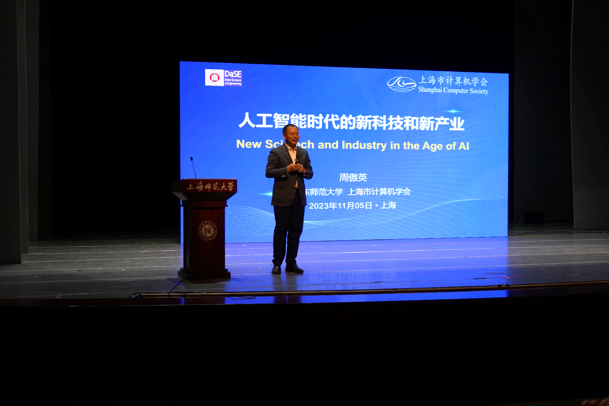 上海市計算機學會理事長、華東師范大學原副校長周傲英教授作《人工智能時代的新科技和新產業》報告,介紹科學研究的四大范式和人工智能的演化過程,強調數據在促進新科技新產業巨大成功上的重要性,以人工智能為代表的新的科技革命已經到來。并提及數據是新能源,是生產的第五要素,能夠把人類從工業文明帶到數字文明,人工智能是數據驅動的引擎和工具,承載著新的思維方式和科學方法,促進人類社會的發展。