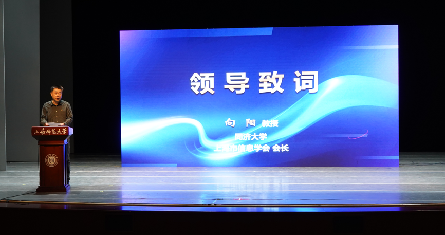 向陽在致辭中代表上海市信息學會對所有支持大會的單位和個人表示感謝。他指出,信息學會在上海的地位和影響力不斷提高離不開歷屆領導和會員的付出。他介紹了與會嘉賓和論壇安排,并表示新一屆學會班子和理事會竭誠為會員服務,最后預祝大會圓滿成功。
