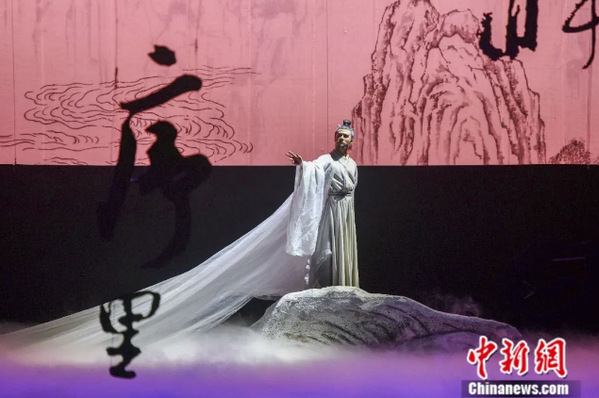 2023年4月,2023年中外舞臺藝術精品海南展演大劇——舞劇《李白》在海南省??谑猩涎?。駱云飛 攝