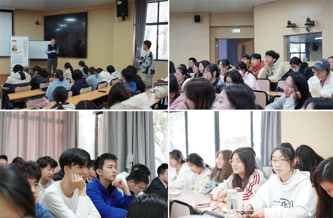 在互動交流環節中,環地學子圍繞“生態韌性”“人類適應性”等問題踴躍地向Ian Townend院士請教。Ian Townend院士以其深厚的學科素養和精湛的學術水平熱情地為同學們答疑解惑。同時,Ian Townend院士強調選擇自己喜歡的科研方向的重要性,并鼓勵大家在日常生活中提升自己,走出書本、走向自然,保持對自然的熱情與敬重,不斷夯實學科素養,為后續科學研究奠定基礎。