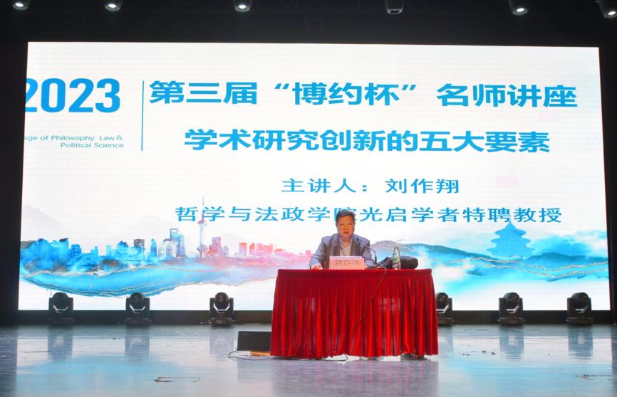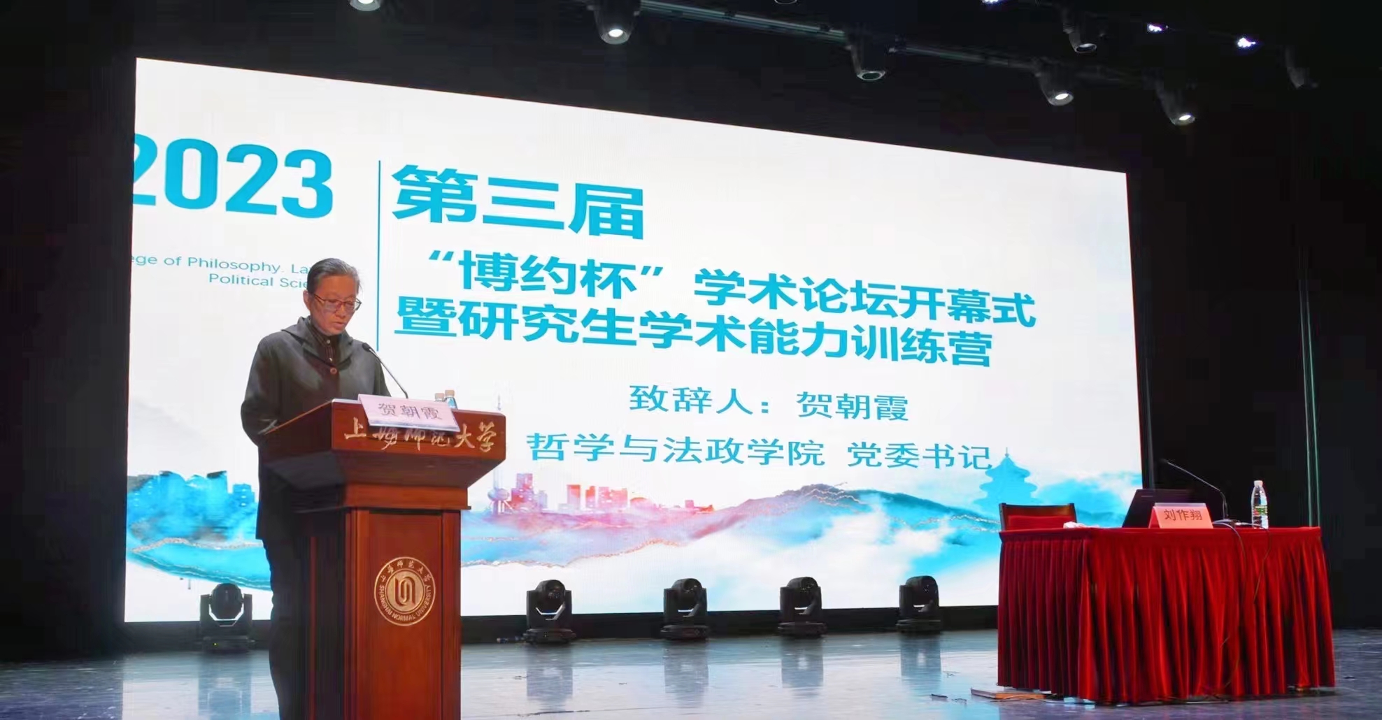 哲學(xué)與法政學(xué)院第三屆“博約杯”學(xué)術(shù)論壇開幕式暨研究生學(xué)術(shù)能力訓(xùn)練營于11月22日在徐匯校區(qū)東部音樂廳舉行。開幕式由哲學(xué)與法政學(xué)院副院長王禮鑫主持,學(xué)院黨委書記賀朝霞致辭,光啟學(xué)者、特聘教授劉作翔做主旨演講,學(xué)院2023級全體研究生出席。