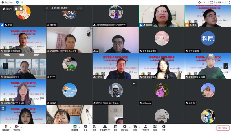 12月2日,由我校知識與價值科學研究所發起,上海師范大學、東華大學、安徽師范大學馬克思主義學院、山西師范大學馬克思主義學院、上海商學院馬克思主義學院、浙江金融學院馬克思主義學院、上海城建學院馬克思主義學院、上海旅游高等專科學校等單位共同承辦的“勞動幸福·人類發展·現代化”——第八屆全國勞動幸福馬克思主義論壇在上海舉行。此次論壇全部在線上進行,來自全國各地的400余名專家學者以騰訊會議方式參會。