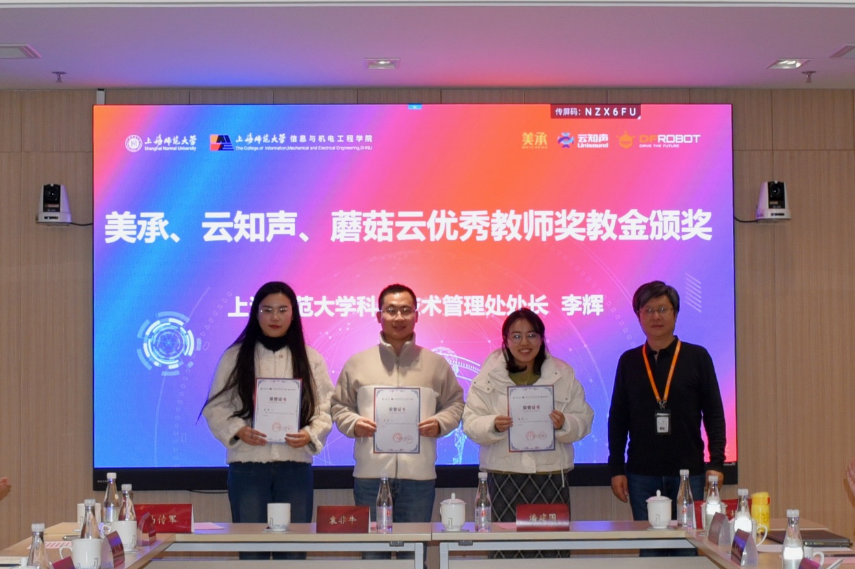 儀式上,通過視頻回顧了信息機電學院這一年來開展“人工智能+教育”社會實踐與學術科研工作的情況。蘑菇云科創教育總經理余靜表示,現在越來越多上師大師范生活躍在信息科技教師崗位上,希望未來更多的師范生投身信息科技教育領域,蘑菇云也將繼續為培養卓越信息科技教師貢獻企業力量;上海美承信息科技有限公司K12教育事業部總經理葉萍表示,在“人工智能+教育”社會實踐活動中深刻感受到上師大學生的專業度、親和力和對教育的情懷,這也更加堅定了企業與師大開展合作的決心,希望能夠讓更多的中小學生感受到“人工智能+教育”科普的力量;云知聲(上海)智能科技有限公司創新事業部總裁陳吉勝表示,云知聲非常榮幸能攜手師大為培養中小學信息科技教師貢獻一份力量,未來也將繼續堅守初心,與師大一起探索“人工智能+教育”社會實踐模式,推動人工智能科創教育行業的發展。獲獎學生代表邵海林分享了自己與“人工智能+教育”的故事。在信機學院學習期間,“從三尺鋼槍到三尺講臺”,從人民解放軍到信息科技老師,變的是身份,不變的是肩上始終扛著的使命榮光。“為人民服務”的種子早已在她心底播種,投身于基礎教育事業也逐漸成為她的目標。作為信機青年,她始終站在“人工智能+教育”愛心公益課堂第一線,將“人工智能+教育”課程從上海帶到西藏,將知識帶給偏遠地區的孩子們。未來她將與千千萬萬的同學們繼續在“人工智能+教育”社會實踐這條路上發揮青春力量。