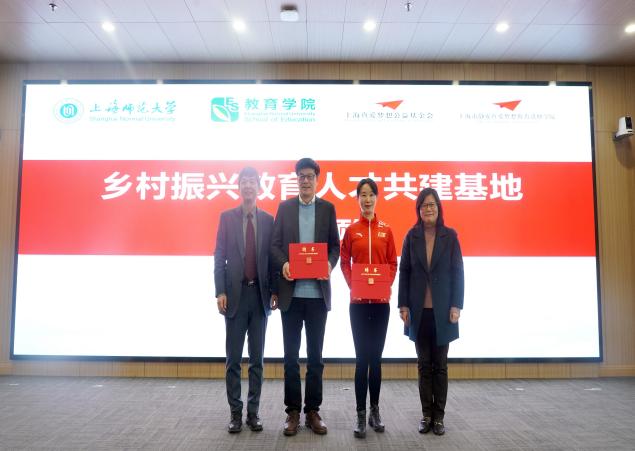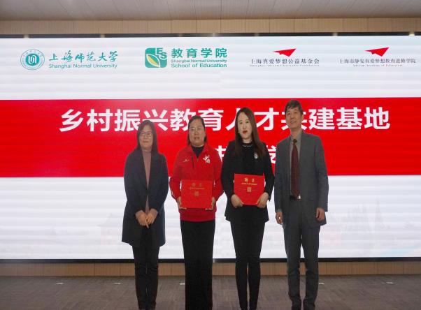 3月11日下午,由上海師范大學教育學院、上海真愛夢想公益基金會、上海市靜安真愛夢想教育進修學院共建的“鄉(xiāng)村振興教育人才共建基地”成立儀式暨學術報告會在上海師范大學順利舉行。上海師范大學黨委常委、總會計師曹光明,香港大學程介明教授,上海市教育學會會長尹后慶,聯(lián)合國教科文組織教師教育中心主任張民選教授,上海市靜安真愛夢想教育進修學院理事長潘江雪,上海真愛夢想公益基金會理事長胡斌,上海師范大學教育學院黨委書記徐曉明,夏惠賢教授等出席了基地成立儀式。本次活動由上海師范大學教育學院院長黃海濤主持。
