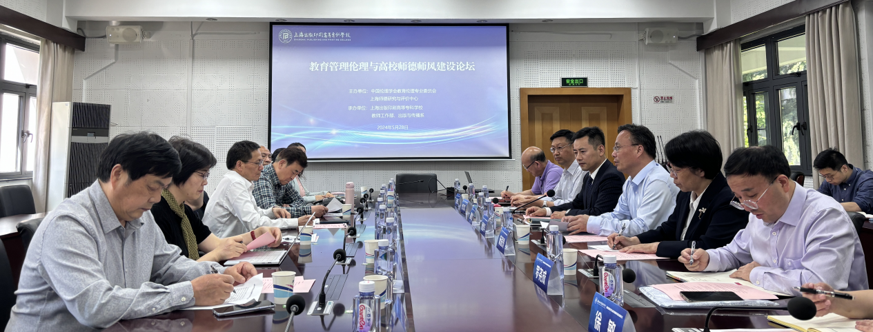 5 月 28 日,為了認真貫徹落實黨的二十大精神和習近平總書記關于立德樹人、加強師德師風建設培養高質量教師隊伍,建設教育強國的重要指示精神,中國倫理學會教育倫理專業委員會、上海師范大學上海師德研究與評價中心和上海出版印刷高等??茖W校在滬聯合舉辦“教育管理倫理與高校師德師風建設論壇”。來自我校和復旦大學、華東師范大學、同濟大學、上海財經大學、上海社會科學院、上海青年學院、解放日報、上海出版印刷高等專科學校等單位的專家教授、管理人員和一線教師30多人出席會議。