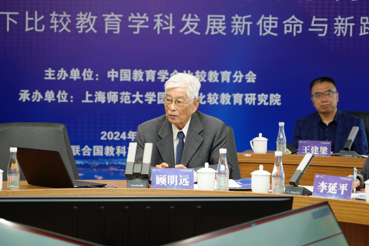 隨后,顧明遠先生發(fā)表了精彩的主旨演講。他從國際政治風云變幻的歷史演變出發(fā),系統(tǒng)回顧改革開放以來中國比較教育學科服務國家戰(zhàn)略的獨特面貌,強調(diào)在百年未有的大變局中,新時代中國比較教育研究要適應新的時代特征,充分考慮到氣候環(huán)境、科技發(fā)展、人口老齡化等帶來的挑戰(zhàn),為建設教育強國服務,為推進“一帶一路”倡議服務。
