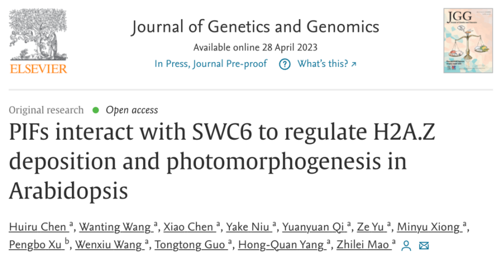 4月28日,Journal of Genetics and Genomics在線發表我校生命科學學院楊洪全教授和茅志磊副研究員團隊題為“PIFs interact with SWC6 to regulate H2A.Z deposition and photomorphogenesis in Arabidopsis”的研究論文。該研究發現擬南芥光敏色素互作因子PIFs通過與SWR1復合體亞基SWC6直接互作,抑制SWC6與光形態建成關鍵正調控因子HY5的結合,減少H2A.Z在生長素響應基因上的占位,從而抑制光形態建成。