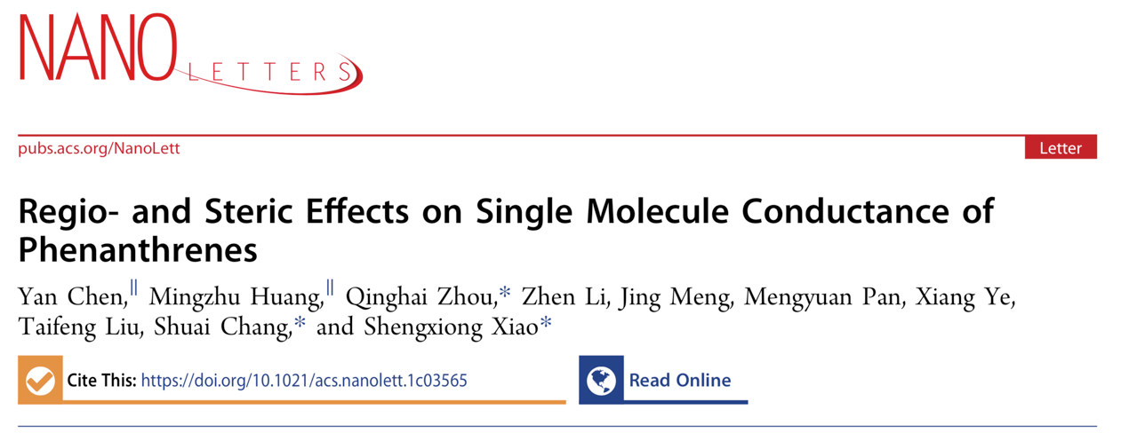 論文鏈接:Regio- and Steric Effects on Single Molecule Conductance of Phenanthrenes | Nano Letters (acs.org)