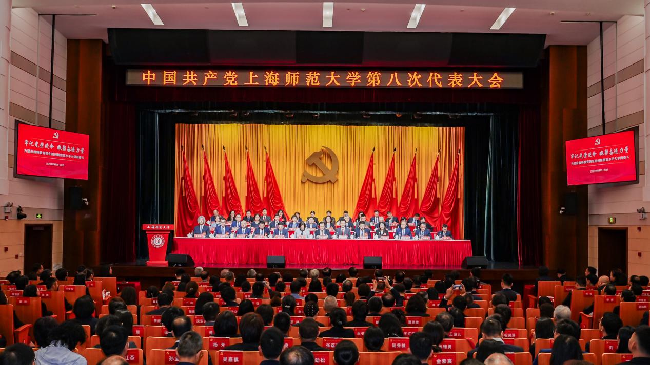 6月25日,中國共產黨上海師范大學第八次代表大會在徐匯校區音樂廳開幕。這是在黨的二十大精神指引下,我國加快實現教育現代化和建設教育強國的重要時期,上海全面深化高等教育綜合改革、服務促進高質量發展的關鍵階段,學校高質量建設教師教育特色鮮明的高水平大學、全力推進“十四五”規劃實施、喜迎建校70周年之際召開的一次十分重要的大會。大會的主題是:高舉習近平新時代中國特色社會主義思想偉大旗幟,深入學習貫徹黨的二十大精神,牢記為黨育人、為國育才光榮使命,團結帶領全校師生員工堅定信心、勇毅前行,加快推動學校高質量發展,為建設教師教育領先的創新型高水平大學而奮斗。