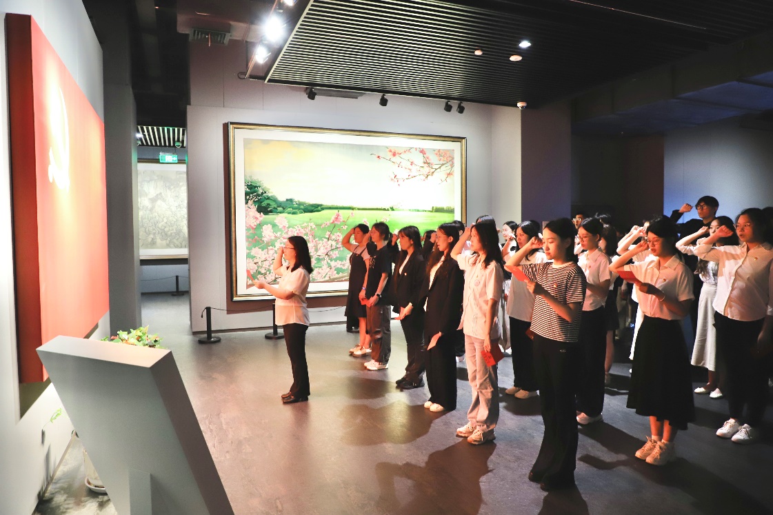 在紀念館內,學院黨委副書記、副院長陳重來擔任領誓人,帶領47名新黨員進行入黨宣誓。全體新黨員面對黨旗,右手握拳,莊嚴宣誓。錚錚誓言,是全體新黨員對黨組織的鄭重承諾,是堅定為黨、為人民、為共產主義奮斗終身的堅守和決心,激勵著新黨員用入黨誓詞約束自身言行,從中汲取不斷加強黨性修養的不竭動力,把踐行入黨誓詞作為終身必修課,在發揮黨員先鋒模范作用中立為黨之志、修為黨之心、行為黨之實。