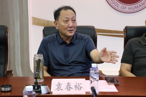 袁春裕對公司的發展歷程、企業規模和創業理念進行了介紹,分享了其創辦固銓檔案的感悟和人生的經驗,表達了始終關心教育、勇擔社會責任的赤誠之心,強調了企業的競爭就是人才的競爭,對檔案數字化、人工智能等方面研究合作以及建優建強教育實踐基地表達了期盼。