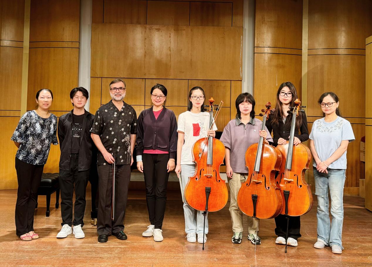 2023級音樂(西洋器樂演奏)專業的研究生程漣怡說:“非常榮幸本學期能夠參加奧維迪烏教授的大師課,我和同學們演奏了弦樂四重奏《帕薩卡利亞》。奧維迪烏教授運用講故事的方式,告訴我們演奏樂曲時,要有更多個性的展示。我們四個人要充分發揮各自的演奏風格,并將這些風格融合在一起,形成獨一無二的音樂。奧維迪烏教授的指導,不僅讓我們的演奏在技術和音色上有了顯著提高,也讓我們對這首作品的處理和內涵有了更深的理解。”
