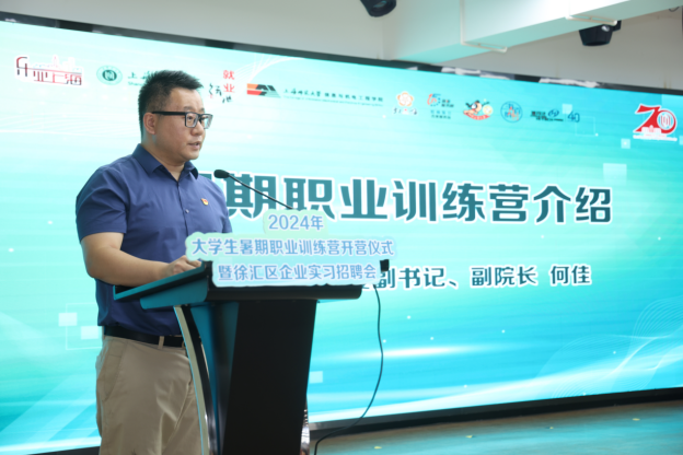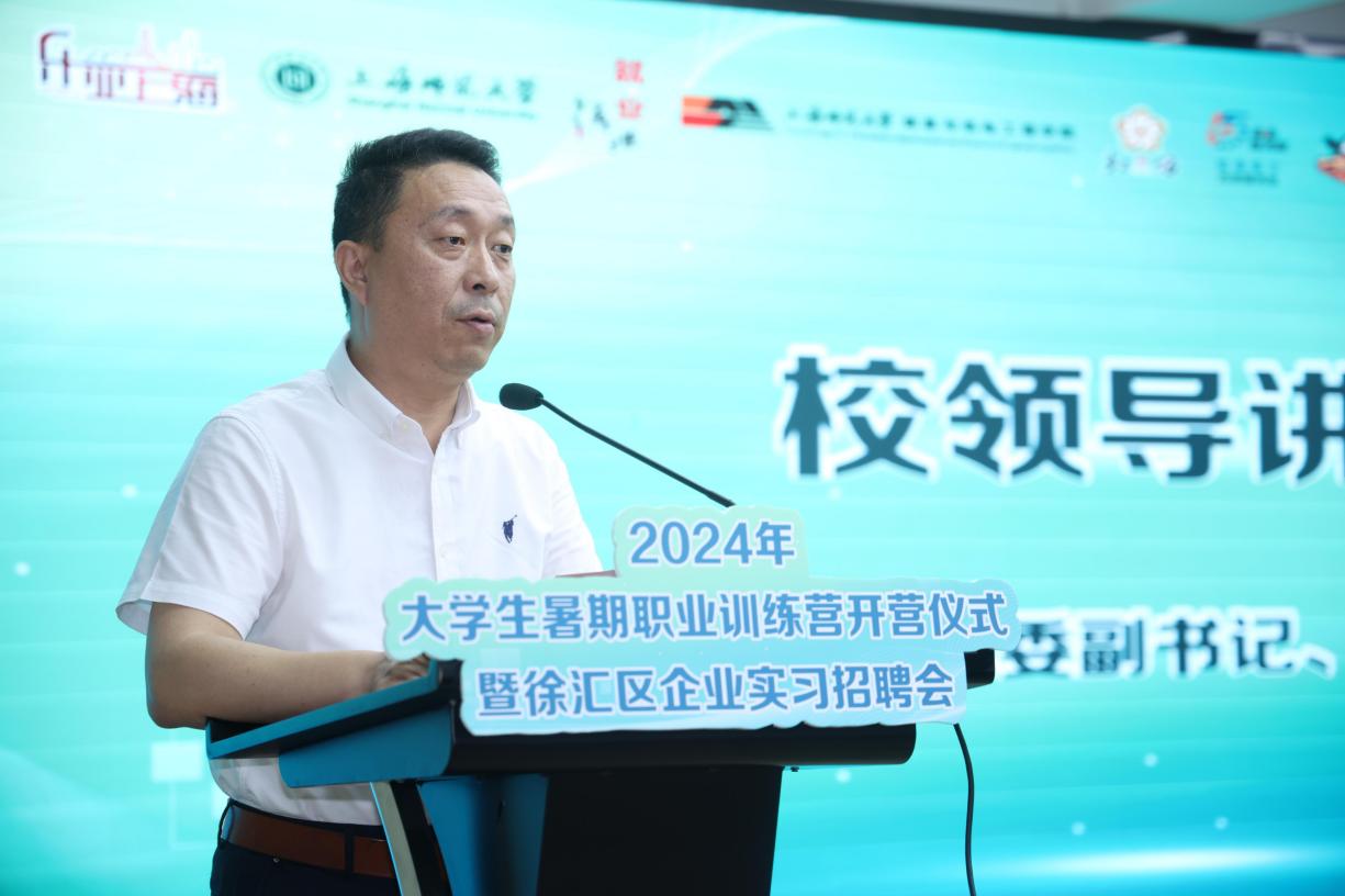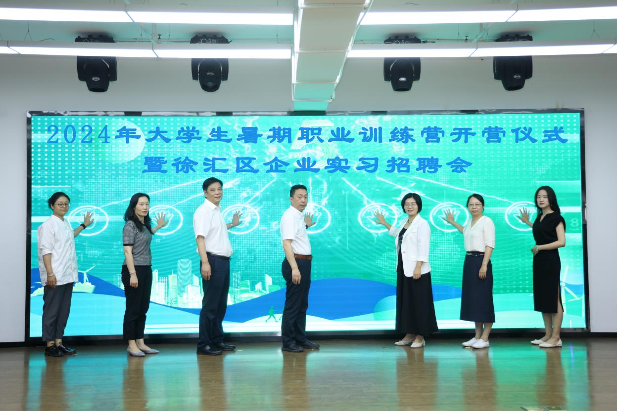 7月5日,由信息與機電工程學院、虹梅街道、漕河涇人才有限公司共同主辦的2024年大學生暑期職業訓練營開營儀式暨徐匯區企業實習招聘會在虹梅街道上澳塘黨群服務中心舉辦。我校黨委副書記、副校長朱惠軍,徐匯區人力資源和社會保障局副局長華軍,徐匯區就業促進中心主任翁海明,虹梅街道黨工委副書記王晶,街道辦事處副主任湯雨樺,漕河涇管理公司科技創新與人才發展事業部總經理、上海臨港漕河涇人才有限公司黨總支書記黃靜,漕河涇管理公司干部處副處長、人力資源中心副總監信超,信息與機電工程學院黨委書記陳曉虹,校學生職業發展與就業指導中心主任蔡瓊霞,虹梅街道、漕河涇、信機學院以及招聘企業代表出席,信機學院百余名暑期職業訓練營學生參加。