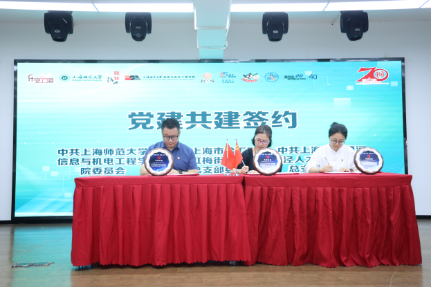 信機學院黨委、虹梅街道機關黨總支、漕河涇人才有限公司黨總支三方代表共同簽署黨建共建協議書。未來,三方將秉持“共建、共創、共享、共贏”的黨建聯建原則,攜手促進跨行業黨組織之間的溝通交流,形成黨建工作互促互進、資源共享、優勢互補的良好局面。