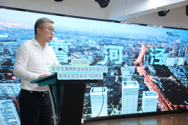 朱惠軍高度肯定了此次活動的意義。他指出,推動高校畢業生高質量充分就業,不僅是國家的重大戰略任務,更是黨的教育方針的具體體現。上海師范大學始終把服務國家和社會經濟發展作為己任,把就業引導作為人才培養中的重要環節,引導師大優秀學子到國家重要行業、關鍵領域建功立業。他強調,暑期職業訓練營是學校實踐教學體系的重要組成部分,旨在通過真實的職場體驗幫助學生提前了解行業趨勢,助力我校畢業生更加充分更高質量就業。同時,他對虹梅街道、漕河涇人才公司等合作單位表示衷心感謝,期待未來有更多類似合作機會,并以自身經歷勉勵各位同學,利用好實習實踐的機會強化個人能力和綜合素養的提升,做好青春“答卷人”。