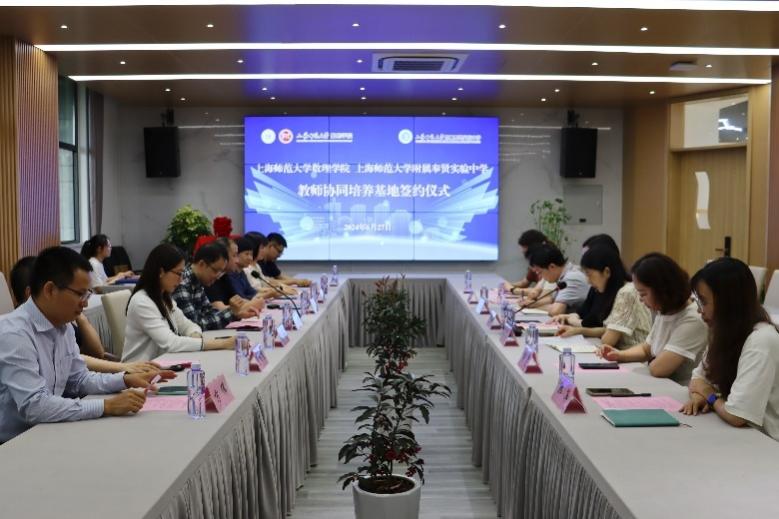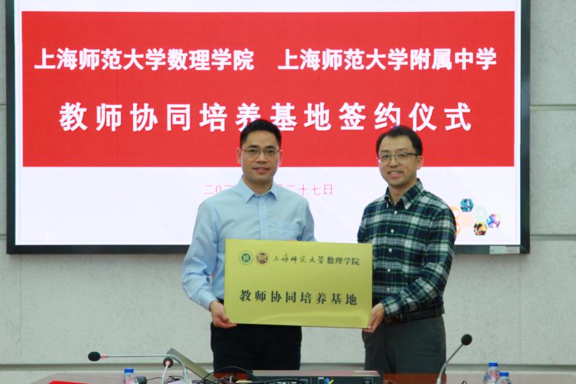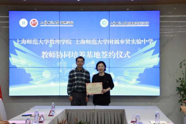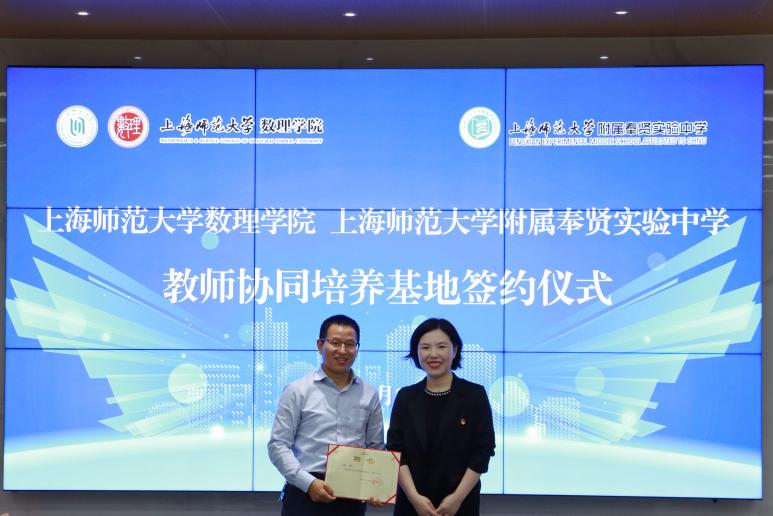 在莊重而熱烈的氣氛中,劉鋒和包蓓姹共同簽署了《上海師范大學(xué)數(shù)理學(xué)院教師協(xié)同培養(yǎng)基地合作協(xié)議書》,并進行了授牌儀式,標志著合作關(guān)系的正式建立。