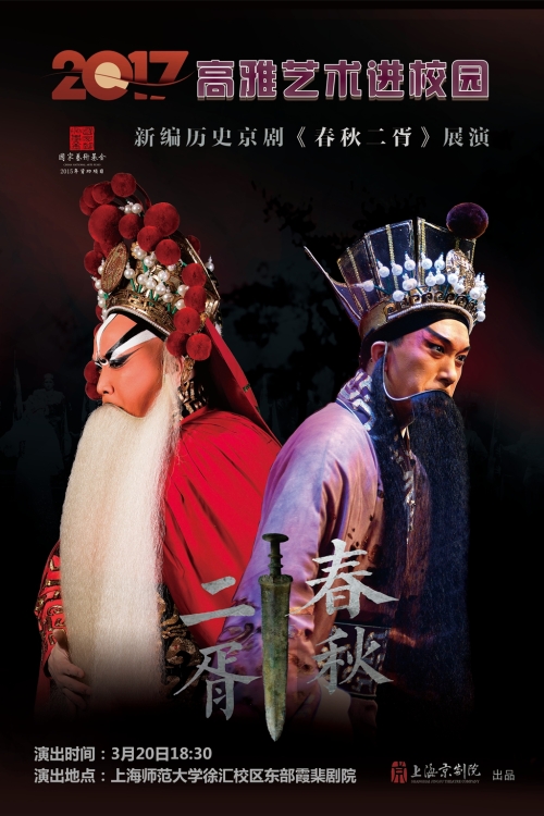 由上海京劇院花臉名家安平和國家一級演員傅希如領銜主演的2014版新編歷史京劇《春秋二胥》,講述了伍子胥與好友申包胥因家仇國恨而相互糾葛的歷史故事,一經推出廣受好評。《春秋二胥》2017版開始了新一輪的修改打磨,由國家一級演員傅希如飾演申包胥,優秀青年演員董洪松飾演伍子胥,開啟展演之旅,即將走進上海師范大學霞斐劇院。