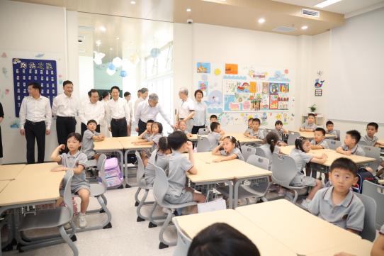 9月2日上午,上海市委常委、臨港新片區黨工委書記、管委會主任陳金山,臨港新片區黨工委委員、管委會專職副主任苗挺等領導來到上海師范大學附屬浦東臨港科創小學指導開學工作。上海師范大學附屬浦東臨港科創小學校長楊莉莉及上海師范大學教務處處長、基礎教育處處長王健向陳金山書記匯報了學校開辦工作。
