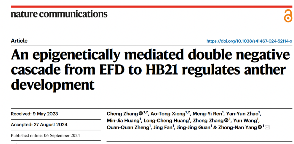 9月6日,我校生命科學學院楊仲南教授團隊在《Nature Communications》發表題為“An epigenetically mediated double negative cascade from EFD to HB21 regulates anther development”的研究論文,該研究揭示了表觀遺傳修飾系統調控花藥發育的分子機制。