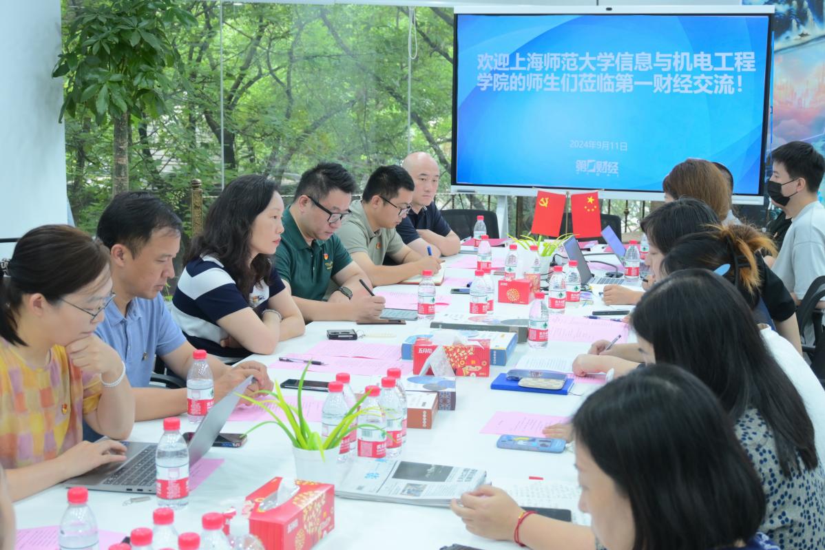 此次參訪,第一財經財經部記者齊琦作為第一財經團委代表參加了與上師大信機學院的師生的交流,帶領他們參觀了第一財經演播室,使他們對媒體內容生產流程有了更為直觀的了解。師生們與第一財經的團隊以“AI”為主題,進行了從理論到實踐的系統交流。雙方將以此為契機,碰撞出“財經”與“科技”的新火花;立足黨建,緊扣業務,在青少年科創教育、公益科普服務等方面展開合作,以更多元的方式賦能信息與教育的平等。