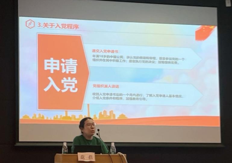 組織員范蓓詳細(xì)說明了入黨申請書的撰寫格式和要求,系統(tǒng)講解了加入黨組織的具體流程,使同學(xué)們對入黨程序和入黨申請書的撰寫規(guī)范有了更深入的了解。