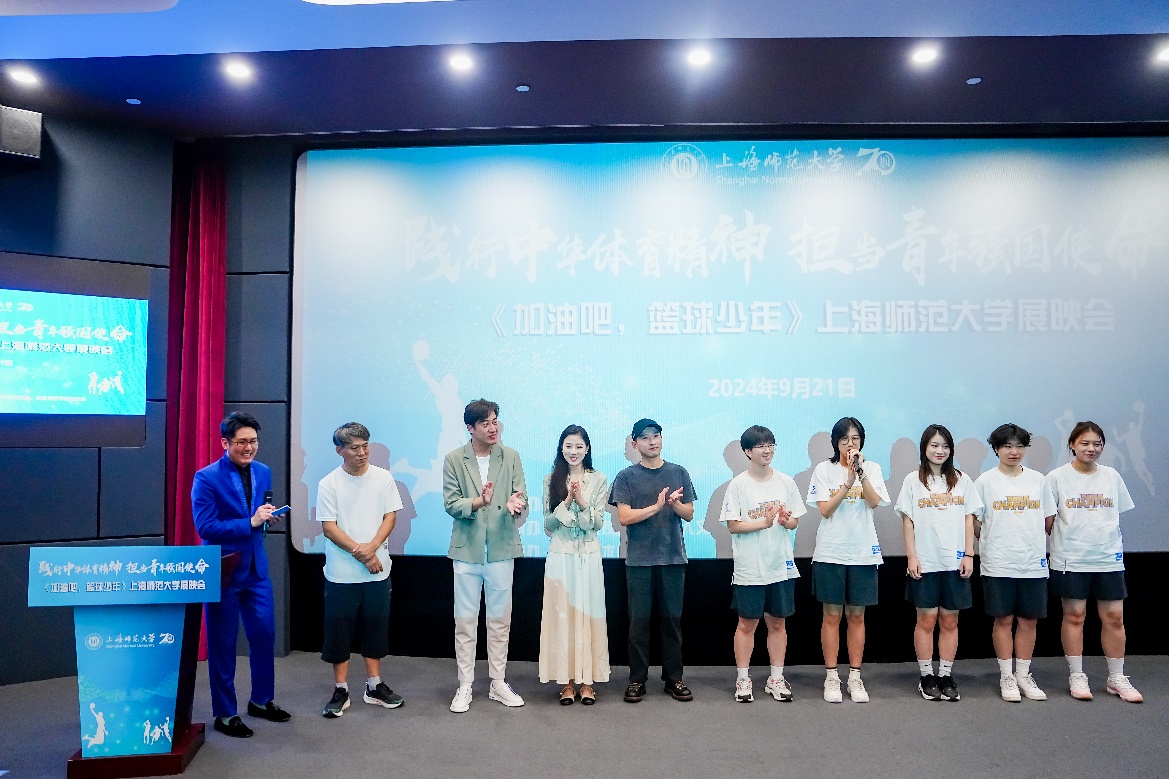 9月21日上午,由上海師大校友會主辦,商界校友聯誼會、人文學院校友會、體育學院校友會、影視傳媒學院校友會承辦,學生藝術中心協辦的《加油吧,籃球少年》上海師范大學展映會在徐匯校區木槿影院舉行。校長、校友會會長袁雯,副校長、校友會副會長蔣明軍,1978級中文系校友、上海電影家協會第八屆理事會主席、上海市文聯副主席任仲倫,1979級中文系校友、上海外高橋集團有限公司原董事長、黨委書記、上海師范大學商界校友聯誼會會長舒榕斌,以及電影《加油吧,籃球少年》主創團隊、各界校友代表、校友會秘書處及相關學院校友工作負責人出席,2024級新生代表參加本次活動。活動由2011級播音與主持藝術專業校友謝寧主持。