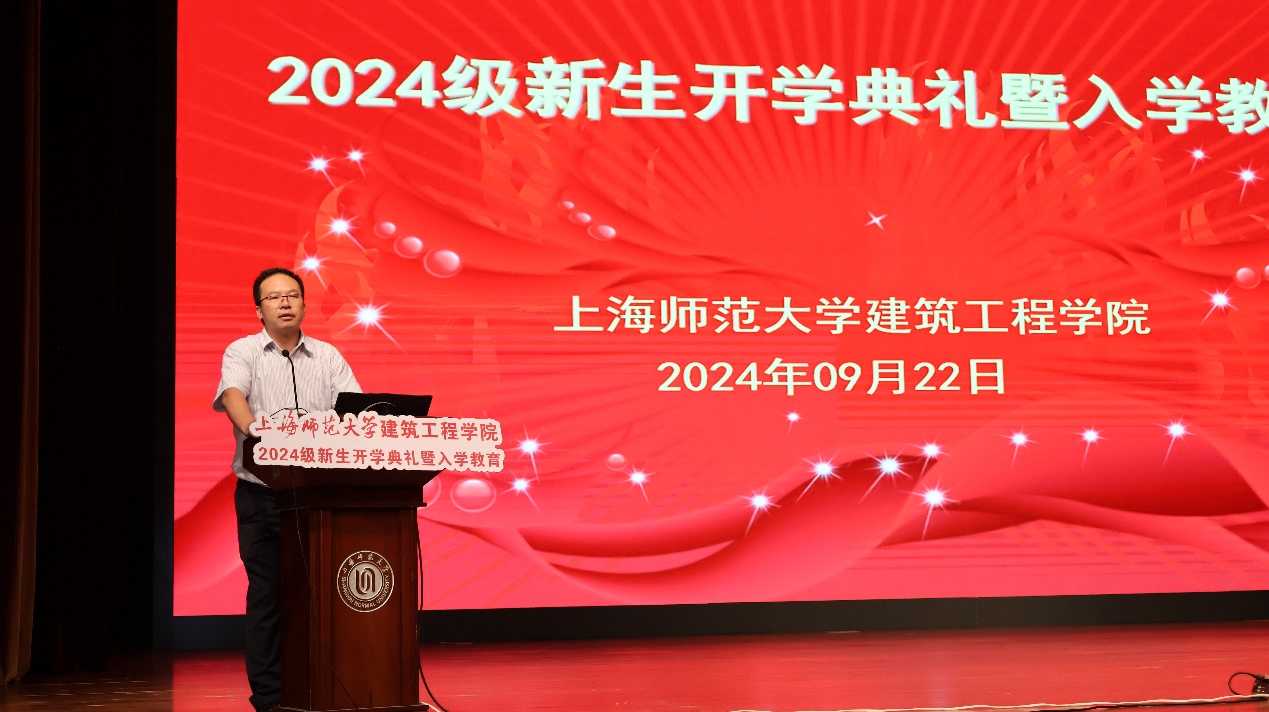 9月22日下午,建筑工程學院在奉賢校區師大劇院舉行2024級新生開學典禮暨入學教育。院長胡振,副院長韓毅、朱美春、吳俊,學院黨委委員、組織員余音,學院土木工程系黨支部書記王紅囡、全體學工組成員與300余名本研新生參加。開學典禮暨入學教育由學院黨委副書記、副院長李琳主持。