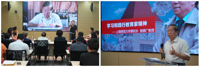 張文青《心懷大愛、匠心德廣》的演講,講述了老校長楊德廣教授“學高為師,身正為范”,一輩子為教育探求真知、辛勤耕耘,以身作則、率先垂范的感人故事,用自己的實際行動詮釋了我們身邊的教育家精神。老校長楊德廣教授以《學習和踐行教育家精神》為題,為機關的老師們講述了他的讀書夢、圖強夢、教育家夢和慈善夢。他談到:強國先強教,強教靠強師,要實現教育強國,關鍵在于加強教師隊伍建設。要成為習近平總書記所說的“四有好老師”,成為“經師”和“人師”相統一的“大先生”,弘揚教育家精神是強國強教強師的根本需要,要成為教育家就要做到全心全意為人民服務,為黨育人、為國育才。