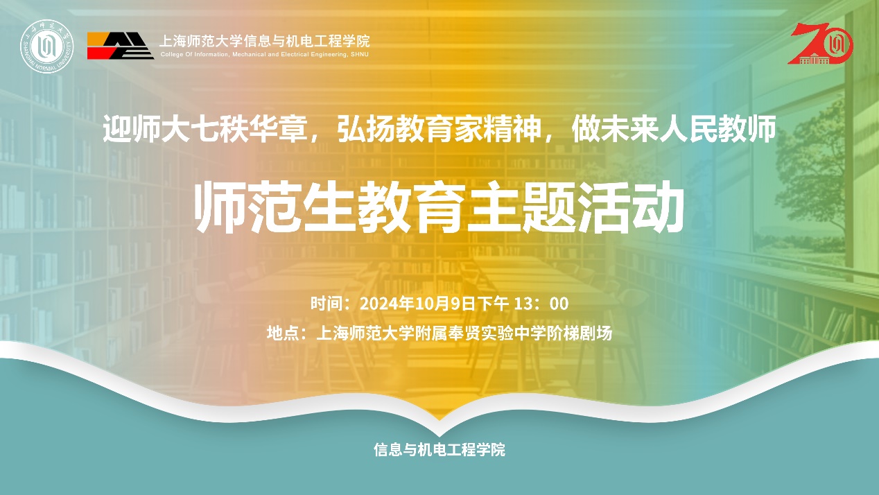 為深入學習貫徹黨的二十大精神,認真貫徹落實習近平總書記關于教育的重要論述,大力弘揚教育家精神,傳承“師道永恒”的師大精神,為師大七十華誕獻禮,10月9日,信息與機電工程學院在上海師范大學附屬奉賢實驗中學舉辦“迎師大七秩華章,弘揚教育家精神,做未來人民教師”師范生教育主題活動。