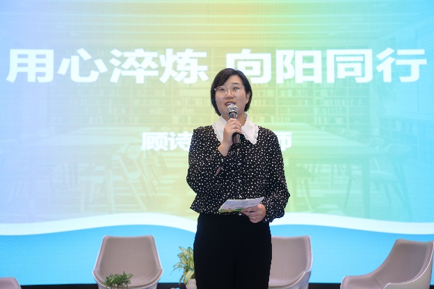 師道傳承,聽師者的故事。三位杰出師者分享了他們在教育之路上的堅守與追求,用個人的豐富經驗和智慧為學生呈現了教育的崇高理想與價值。楊德廣校長以《我與師大的故事》為題將學生帶回那充滿奮斗與榮光的校園歲月。他以生動的描繪再現了這座學府的輝煌歷史,同時浸染著他對教育事業不懈追求的深厚情懷。包蓓姹校長以《堅守一諾,扎根奉賢》為題講述了她在農村教育領域堅守長達17年的初心與使命,同時也將“扎根基礎教育,書寫教育新篇章”的信念植入學子心中,為未來的教育發展播下希望的種子。顧詩憶老師以《用心淬煉,向陽同行》為題分享了她作為一名青年教師的奮斗故事,展現了這份職業潛在的無限希望與可能,激勵著每一位心懷理想的學子勤勉不輟,勇敢追夢。