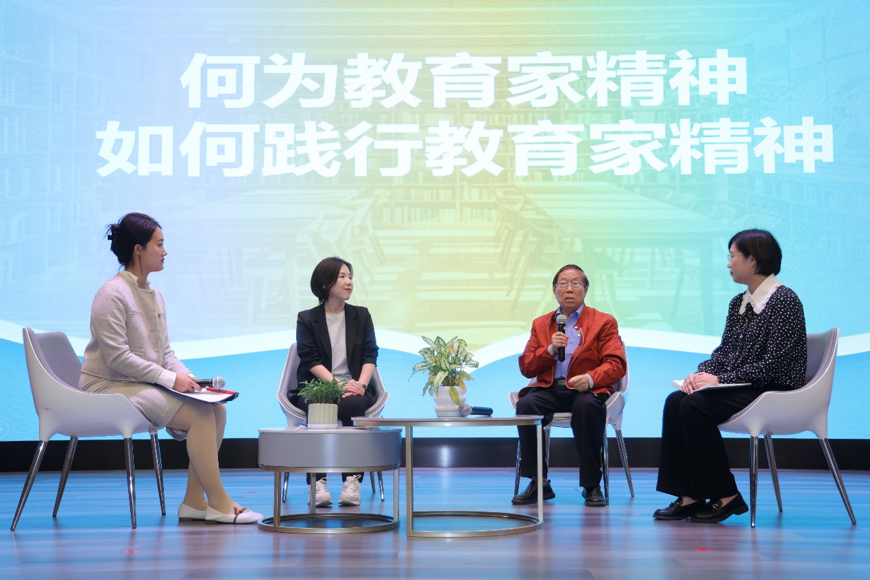 活動邀請了上海師范大學原校長、當代教育名家、中華慈善獎慈善楷模楊德廣,上海師范大學附屬奉賢實驗中學黨支部書記、校長、全國模范教師包蓓姹,上海市松江區教育學院附屬實驗學校教師、全國模范教師、學院2010級校友顧詩憶作為嘉賓共話教育家精神。學院系主任、專業教師、班導師、輔導員、師范生等300余人參加,活動由學院黨委副書記、副院長何佳主持。