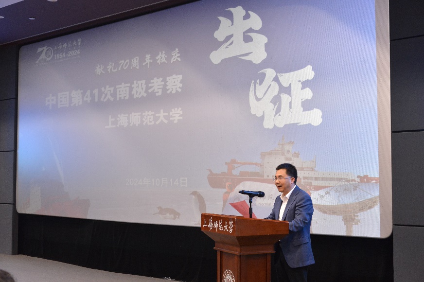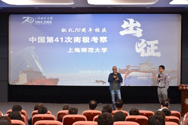 10月14日下午,學校在木槿校園影院舉行了上海師范大學南極出征儀式暨中國極地考察40周年特別觀影活動。我校數理學院張毅副教授入選中國第41次南極考察隊,將于本月底踏上南極征程。張毅是我校首位踏上南極大陸、開展科學考察任務的老師,值此校慶之際,學校舉行南極出征送行儀式,同時聯合極地系列紀錄電影《光語者:獨步南極》的主創團隊,播放紀錄影片,并邀請歷屆極地科考隊員同主創團隊一起,通過講述極地科考故事,展示我校南極科研成果,弘揚科學家精神校黨委書記林在勇、副校長李曄,中國極地研究中心業務發展與國際合作處副處長姜鵬研究員,《光語者:獨步南極》制片人盧武、導演饒子君、數理學院領導班子和部分師生參加了本次活動?;顒佑蓴道韺W院院長劉鋒主持。