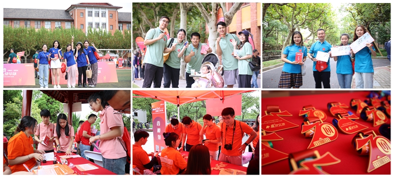 本次活動由上海趣游文化旅游發(fā)展集團(tuán)有限公司贊助,同時(shí)得到了各學(xué)院、團(tuán)委、檔案館、保衛(wèi)處、后勤實(shí)業(yè)中心等部門的通力協(xié)作與支持。本次活動招募志愿者100余名,他們身著統(tǒng)一的志愿者服裝,活躍在校園各處打卡點(diǎn),為校友們提供熱情周到的服務(wù)。