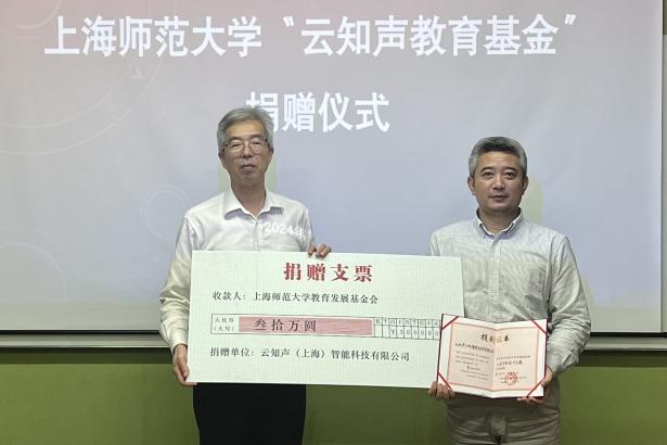 在迎來上海師范大學建校70周年之際,10月12日下午,云知聲(上海)智能科技有限公司向上海師范大學教育發展基金會捐贈教育基金30萬元,進一步支持學校人工智能+STEM教育學科建設和人才培養,儀式在云知聲(上海)智能科技有限公司舉行。學校總會計師、校基金會副理事長曹光明,上海電力大學副校長、上海師范大學STEM教育交叉技術創新研究中心主任張波,信機學院黨委書記陳曉虹,校教育發展基金會副秘書長王軍峰,信機學院黨委副書記、副院長何佳,信機學院副院長潘建國,云知聲(上海)智能科技有限公司總經理陳吉勝、商務總監王冰林、云知學院運營負責人曹世超出席儀式。