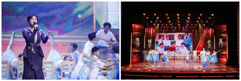 著名歌唱家周進華、陸蓉演唱的《我的深情為你守候》抒發了師大人在新時代新征程上,以強烈的歷史主動精神奮力書寫中國式現代化新篇章的心聲。