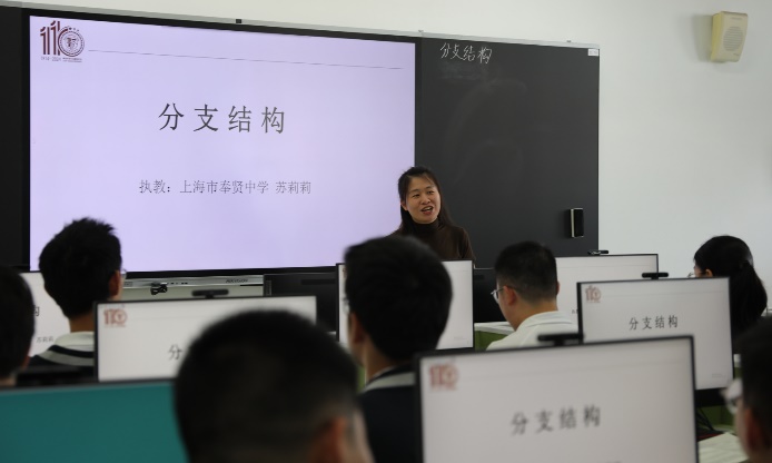 10月9日,2023級計算機師范生來到奉賢中學實習基地,近距離觀摩實習指導老師蘇莉莉和大四實習生吳幽陽同學圍繞“分支結構”課題進行同課異構的兩堂公開課,與實習指導老師、區教研員、實習生一起研討如何有效設計與實施信息技術學科教學。