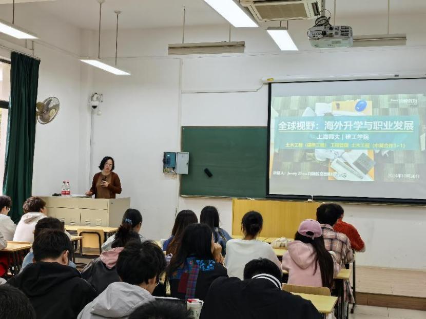 10月30日上午,建筑工程學院在奉賢校區5教舉辦《全球視野:海外升學與職業發展》國外留學申請專題講座,特別邀請均融教育首席規劃顧問Jenny Zhou老師作為主講嘉賓,為懷揣留學夢想的建工學子提供專業、全面的留學申請指導。本次講座由學院就業專項輔導員孫魯老師主持。