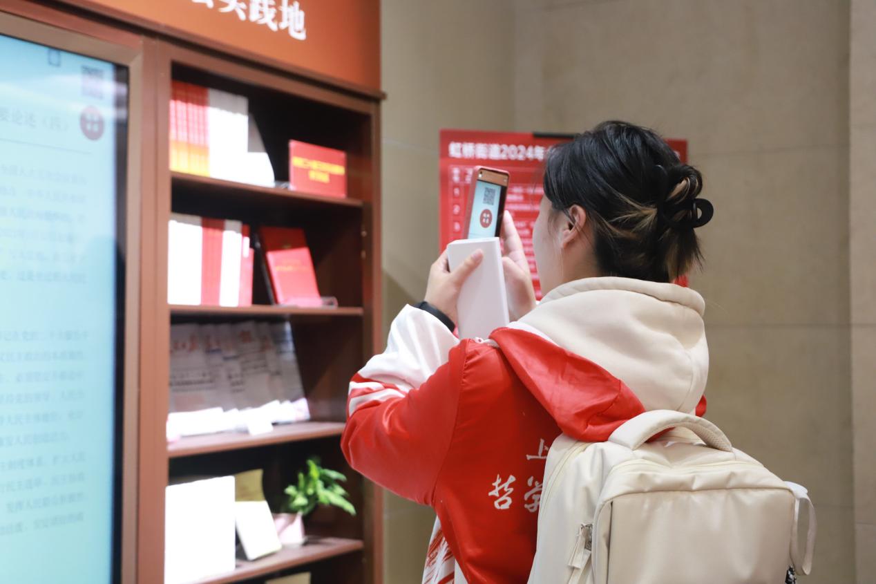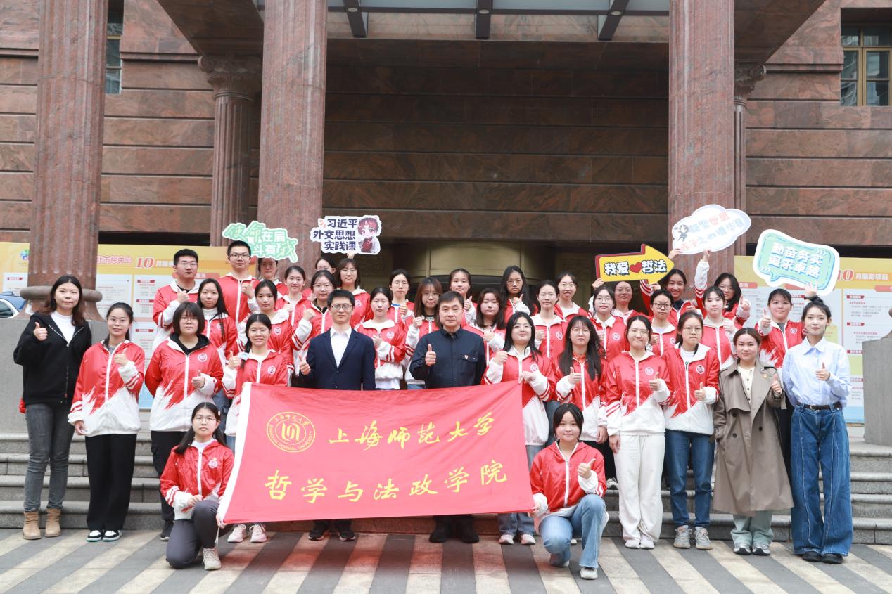 10月30日下午,哲學與法政學院前往長寧區虹橋街道古北市民中心開展“追尋總書記的上海足跡---情景思政課”活動。哲學與法政學院院長劉林,黨委副書記、副院長姚秋磊,學院2024級思想政治教育(道德與法治)師范生和選修習近平法治思想、習近平外交思想專論課的學生代表參與本次活動。
