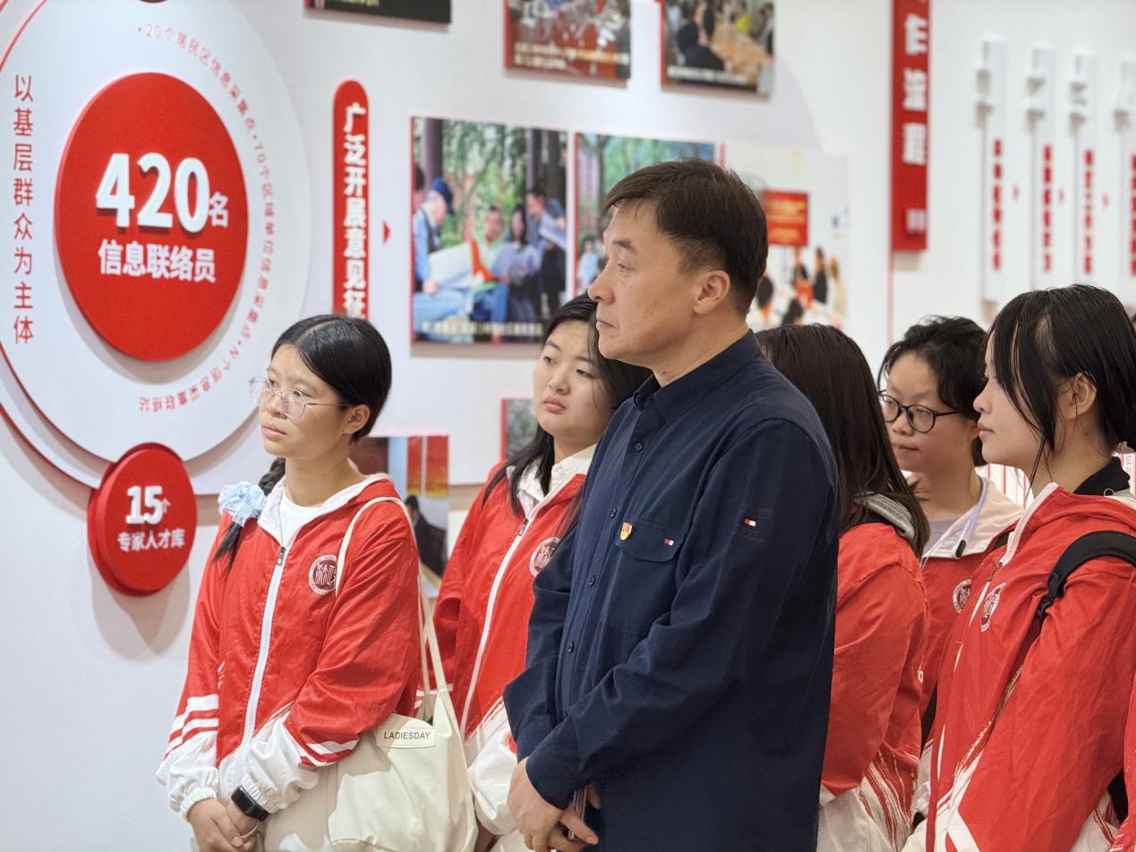參觀過后,哲學與法政學院院長劉林以“感悟全過程人民民主”為主題,為學院思想政治教育(道德與法治)班級同學上了一堂生動的沉浸式思政教育課。劉林院長從基層治理、國際比較與自身調研經歷出發,詳細講解“全過程人民民主”在調動人民積極性和主動性、增強人民主人翁意識以及推動國家治理現代化方面的重要作用。他鼓勵同學們要“扣好人生的第一粒扣子”,厚植愛國主義情懷,堅定道路自信、理論自信、制度自信和文化自信,厚德博學,勤奮務實,學思結合,讓青春在奉獻中煥發絢麗光彩。