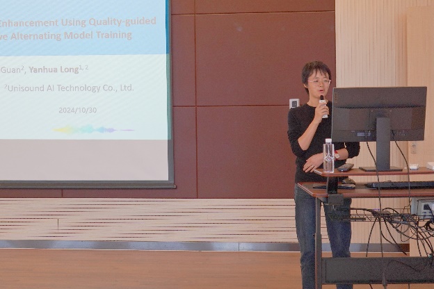 “智能時代的多領域創新探索與應用”主題分論壇上,上海交通大學的宋利教授作了題為“人工智能時代的數智人”的報告,解讀數智人的AI生成理論與技術,為聽眾展示當前數智人前沿技術進展和數智人生成的技術潛力、典型應用。學院李傳江教授作了題為“智能制造中的精密流體控制技術研究與開發”的報告,介紹半導體制造等領域的精密點膠閥和質量流量控制器的工作原理和關鍵技術。龍艷花教授作了題為“基于質量引導信號混合和競爭交替模型訓練的無監督語音增強”的報告,介紹一種創新的無監督語音增強方法。程猛副教授作了題為“基于DOA與因子圖算法的無線定位與追蹤問題”的報告,介紹一種新型的基于本地無線網絡設施的定位系統。碩士研究生夏雯靖和楊毅分別介紹了“基于智能手機和云計算的家用男性生育力檢測與評估系統”和“基于強化學習的圖神經網絡防御方法”的研究工作。本分論壇由學院青年教師張巧珍、郭暢主持。