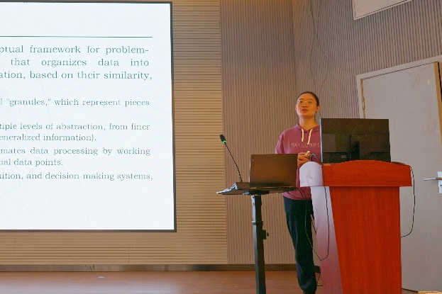 “智能系統與數據科學:理論與應用”主題分論壇上,上海大學駱祥峰教授作了題為“智能無人系統虛實遷移學習方法”的報告,圍繞無人系統學習過程中的場景生成方法、場景語義一致性表征與泛化方法,以及博弈對抗過程中對手意圖建模方法進行討論。學院林曉教授作了“無監督句子嵌入對比學習方法及其應用”的報告,介紹基于增強語義原型的無監督句子嵌入對比學習方法。趙雪榮副教授作了題為“粒計算模型研究”的報告,介紹粒計算的三類模型:粗糙集、三支決策和形式概念分析。楊茹副教授作了題為“淺談形式化方法”的報告,剖析了形式化方法的必要性、定義及其分類。碩士研究生吳世鑫、吳沛晗分別作了題為“基于深度學習的衛星云圖分析與預測”和“基于社會理論的多主題自監督社交推薦”的報告。本分論壇由學院青年教師趙勤、李雙主持。