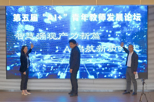 陳曉虹對蒞臨本次論壇的各位專家、師生們致以誠摯的感謝和熱烈的歡迎,并介紹了學院在助力青年教師成長、鍛煉學生學術交流能力、促進科研合作和學科交叉融合方面的創新舉措。她談到:“AI+”青年教師發展論壇是努力實現學院高質量發展的一個重要平臺,希望學院青年教師能好好利用此次交流機會,了解不同領域的前沿理論和技術,實現跨學科交流與合作。李建華介紹了CCF上海分部一系列助力青年學者的特色活動和主題論壇。他表示,青年科技工作者是創新發展的生力軍,預祝上海師范大學第五屆“AI+”青年教師發展論壇圓滿舉辦。袁非牛鼓勵年輕教師積極參加學術交流,拓展思維潛能、實現學科交叉和融合,建議研究生和本科生加強與校內外同行交流,勇于展示學術成果,提升表達能力。李建華、陳曉虹、袁非牛共同完成論壇啟動儀式。
