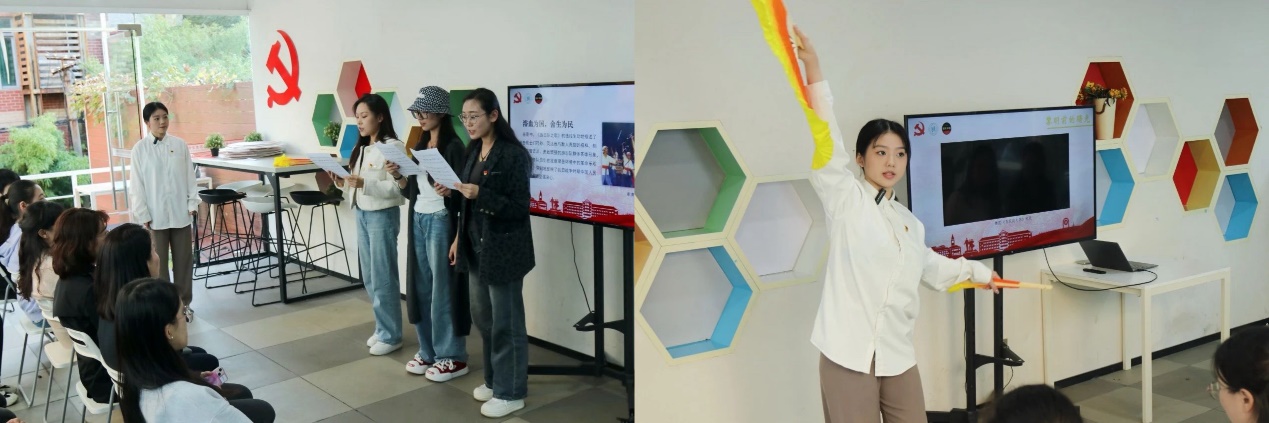本期主講人胡悅同志對該示范黨課深有體會,作為參與創(chuàng)排示范黨課的成員之一,她表示從作品的最初創(chuàng)作到黨課的最終呈現(xiàn),每時每刻都是對自我黨性修養(yǎng)的培養(yǎng)與塑造。在本次黨課上,參與示范黨課的同學們也紛紛交流了自己的感受,同時表示將以示范黨課為起點,持續(xù)發(fā)揮以歌敘史,以美育德的作用。